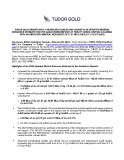 The MRE was prepared by Garth Kirkham, P.Geo, based on 225 diamond drill holes (175,719 meters) completed between 2007 and 2023. The MRE included 27,394 meters of diamond drill holes that were completed since the 2023 MRE. A National Instrument 43-101 Technical Report is expected to be prepared by Garth Kirkham Geosystems and JDS and posted on www.tudor-gold.com and under the Company’s profile on www.SEDAR.com within 45 days of the date of this news release.