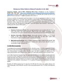 Metal Sales and Inventories: Sold 1,756,094 oz silver and 10,880 oz gold during the quarter. Held 174,759 oz silver and 394 oz gold bullion inventory and 7,369 oz silver and 385 oz gold in concentrate inventory at quarter end.