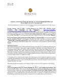 Aurania’s board of directors have approved a debt settlement arrangement with Dr. Keith Barron, the CEO and a director of the Company, whereby Dr. Barron will convert up to C$1.0 million of the loans owed to him by the Company into Common Shares at a price of C$0.20 per Common share (the “Debt Settlement”). There are no warrants associated with the Debt Settlement. The Company has elected to settle the indebtedness through the issuance of Common Shares to preserve cash and strengthen the Company’s balance sheet.