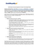 Gold Royalty Corp. is a gold-focused royalty company offering creative financing solutions to the metals and mining industry. Its mission is to invest in high-quality, sustainable, and responsible mining operations to build a diversified portfolio of precious metals royalty and streaming interests that generate superior long-term returns for our shareholders. Gold Royalty's diversified portfolio currently consists primarily of net smelter return royalties on gold properties located in the Americas.