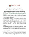 This press release contains certain information that may constitute "forward-looking information" under applicable Canadian securities legislation. Forward looking information includes, but is not limited to, the timing and availability of EDC and other project funding. Forward-looking information is necessarily based upon several assumptions that, while considered reasonable, are subject to known and unknown risks, uncertainties, and other factors which may cause the actual results and future events to differ materially from those expressed or implied by such forward-looking information. Factors that could affect the outcome include, among others: future prices and the supply of metals, the future demand for metals, the results of drilling, inability to raise the money necessary to incur the expenditures required to retain and advance the property, environmental liabilities (known and unknown), general business, economic, competitive, political and social uncertainties, results of exploration programs, risks of the mining industry, delays in obtaining governmental approvals, failure to obtain regulatory or shareholder approvals. There can be no assurance that such information will prove to be accurate, as actual results and future events could differ materially from those anticipated in such information. Accordingly, readers should not place undue reliance on forward-looking information. All forward-looking information contained in this press release is given as of the date hereof and is based upon the opinions and estimates of management and information available to management as at the date hereof. Canada Nickel disclaims any intention or obligation to update or revise any forward-looking information, whether because of new information. Neither TSX Venture Exchange nor its Regulation Services Provider (as that term is defined in policies of the TSX Venture Exchange) accepts responsibility for the adequacy or accuracy of this release.