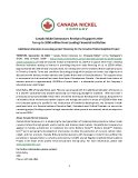 This press release contains certain information that may constitute "forward-looking information" under applicable Canadian securities legislation. Forward looking information includes, but is not limited to, the ability to secure project financing, the timing and receipt of construction permits, the ability to commence construction at Crawford, and timing and availability of funding from Export Development Canada, other project funding and refundable tax credits. Forward-looking information is necessarily based upon several assumptions that, while considered reasonable, are subject to known and unknown risks, uncertainties, and other factors which may cause the actual results and future events to differ materially from those expressed or implied by such forward-looking information. Factors that could affect the outcome include, among others: the terms on which the Company is able to secure debt financing (if at all), future prices and the supply of metals, the future demand for metals, the results of drilling, inability to raise the money necessary to incur the expenditures required to retain and advance the property, environmental liabilities (known and unknown), general business, economic, competitive, political and social uncertainties, results of exploration programs, risks of the mining industry, delays in obtaining governmental approvals, failure to obtain regulatory or shareholder approvals. There can be no assurance that such information will prove to be accurate, as actual results and future events could differ materially from those anticipated in such information. Accordingly, readers should not place undue reliance on forward-looking information. All forward-looking information contained in this press release is given as of the date hereof and is based upon the opinions and estimates of management and information available to management as at the date hereof. Canada Nickel disclaims any intention or obligation to update or revise any forward-looking information, whether because of new information. Neither TSX Venture Exchange nor its Regulation Services Provider (as that term is defined in policies of the TSX Venture Exchange) accepts responsibility for the adequacy or accuracy of this release.