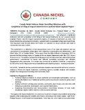 "Canada Nickel Achieves Major Permitting Milestone with Completion of Filing of Impact Statement for Crawford Nickel Sulphide Project"