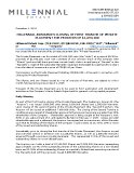 "Millennial announces closing of first tranche of private placement for proceeds of $1,693,200"