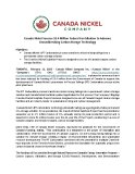 Canada Nickel Company Inc. is advancing the next generation of nickel-sulphide projects to deliver nickel required to feed the high growth electric vehicle and stainless steel markets
