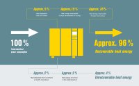 (PresseBox) - Compressor operators have a distinct advantage when it comes to reducing energy consumption and costs, because the savings are already there for the taking. The key to this potential ‘gold mine’ lies in heat recovery – up to 96 percent of the energy that is used to produce compressed air remains available for reuse as heat.