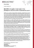 (PresseBox) - In 2011, BELECTRIC is once again the global market leader in the development and construction (EPC) of ground-mounted solar power plants and roof-mounted photovoltaic systems. For the second year in a row, BELECTRIC has installed more photovoltaic power around the world than any other company in the industry. Across all continents, 62 solar power plants were constructed in addition to a multiplicity of large-scale roof-mounted photovoltaic systems, photovoltaic greenhouse systems and photovoltaic car park systems with a total output of 391 MW. This is the result of an analysis of the photovoltaics market conducted by Solarpraxis AG in collaboration with the iSuppli market research institute ("photovoltaik" magazine 12/2011). BELECTRIC pursues a sustainable and innovative strategy. The development of the company and its products focuses on the customers and their satisfaction in every stage of project planning and realization.